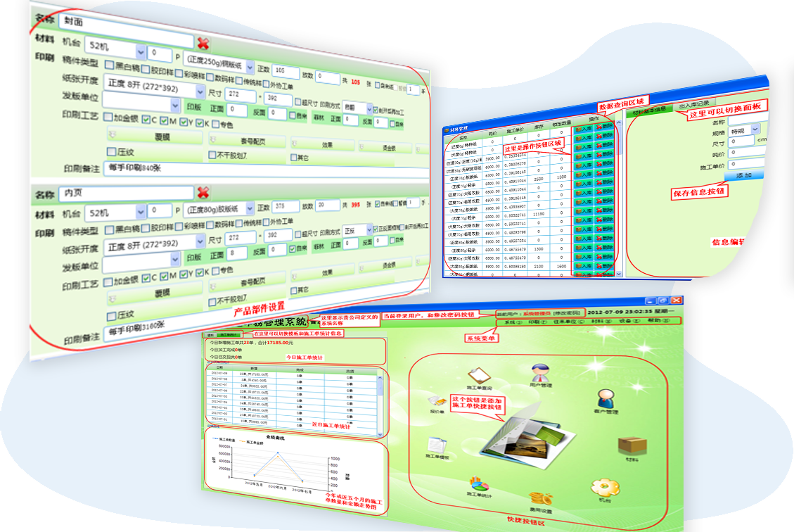 幫助印刷企業(yè)解決算價不準(zhǔn)、多個業(yè)務(wù)員算價不一致、印刷安排不智能的問題。靈活的算式公式編輯功能,支持階梯價、固定價、超尺寸價格等規(guī)則設(shè)置。包括材料管理、印刷單管理、機(jī)臺管理、客戶管理等功能。
